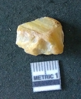 | Description / विवरण | The chalcedony flake is pale yellow in color. Translucent in appurtenance. The piece is shows sharp pointed ends and flake scars on the surface. As a result of flaking. |