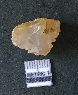 | Description / विवरण | The chalcedony flake is pale yellow in color. Translucent in appurtenance. The piece is shows sharp pointed ends and flake scars on the surface. As a result of flaking. |