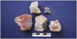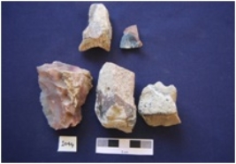 | Description / विवरण | Flakes and chunks, byproduct of tool manufacturing, made on chert, prepared platform, diffused bulb on ventral side. |