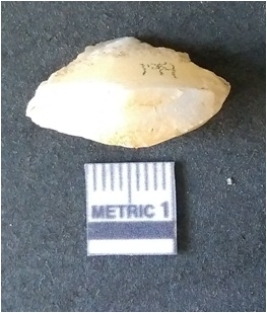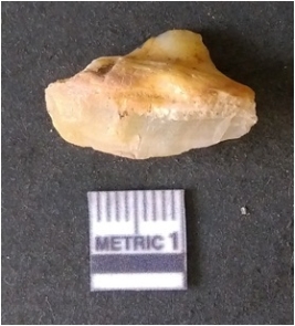 | Description / विवरण | It is chalcedony flake, translucent in appearance. The piece shows sharp pointed ends and flake scars on the surface as a result of flaking. The piece shows a bulb of percussion. |