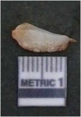 | Description / विवरण | The quartz flake has sharp flaked edges and pointed ends as a result of flaking. The piece is semi-transparent in nature with irregular fracture pattern. The piece is roughly triangular in shape and has a prominent bulb of percussion. |