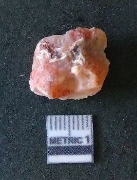 | Description / विवरण | The quartz fragment shows prominent flaks scars and sharp flaked ends as a result of flaking. The piece is translucent white and shows cryptocrystalline matrix. |