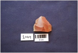 | Description / विवरण | Flake on chert, prepared platform, bulb absent on ventral side, byproduct of tool manufacturing. |