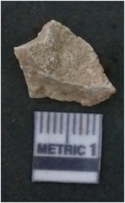 | Description / विवरण | The quartz flake has sharp flaked edges and pointed ends as a result of flaking. The piece is semi-transparent in nature with irregular fracture pattern. The piece is roughly triangular in shape and has a prominent bulb of percussion. |