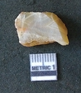| Description / विवरण | The chalcedony flake is pale yellow in color. Translucent in appurtenance. The piece is shows sharp pointed ends and flake scars on the surface. As a result of flaking. |