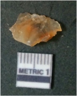 | Description / विवरण | It is chalcedony flake, translucent in appearance. The piece shows sharp pointed ends and flake scars on the surface as a result of flaking. The piece shows a bulb of percussion. |