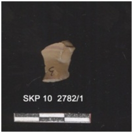 | Description / विवरण | It is a fragment of chert. It is the by-productof stone tool manufacturing and the ridges can be seen. |