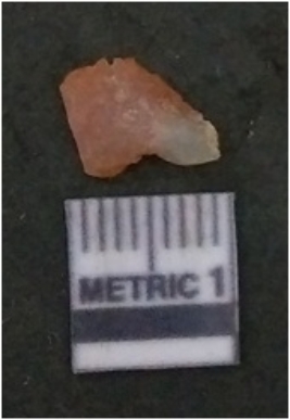| Description / विवरण | It is chalcedony flake, translucent in appearance. The piece shows sharp pointed ends and flake scars on the surface as a result of flaking. The piece shows a bulb of percussion. |