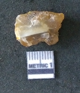 | Description / विवरण | The chalcedony flake is pale yellow in color. Translucent in appurtenance. The piece is shows sharp pointed ends and flake scars on the surface. As a result of flaking. |