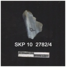 | Description / विवरण | It is a fragment of chert. It is the by-product of stone tool manufacturing and the ridges can be seen. |