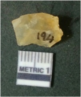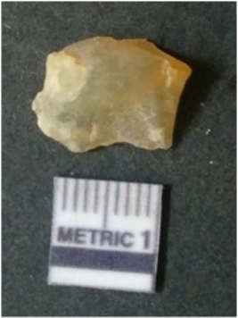 | Description / विवरण | It is chalcedony flake, translucent in appearance. The piece shows sharp pointed ends and flake scars on the surface as a result of flaking. The piece shows a bulb of percussion. |