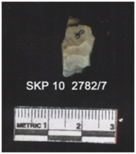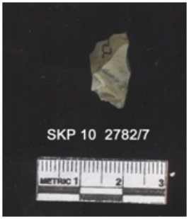 | Description / विवरण | It is a fragment of chert. It is the by-product of stone tool manufacturing and the ridges can be seen. |