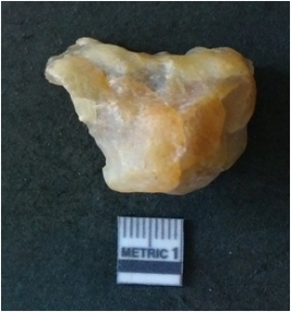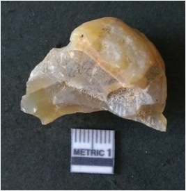 | Description / विवरण | It is chalcedony flake, translucent in appearance. The piece shows sharp pointed ends and flake scars on the surface as a result of flaking. The piece shows a bulb of percussion. |