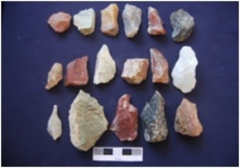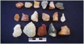 | Description / विवरण | Flakes and chunks, made on chert, agate and chalcedony, byproduct of tool manufacturing, a few flakes with prepared platform whereas the others with narrow platform, diffused bulb on ventral side. |