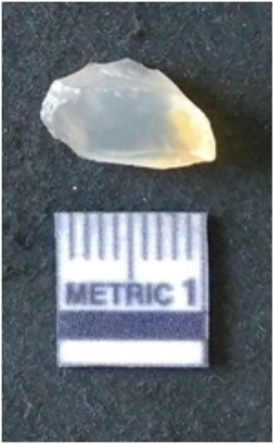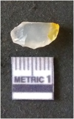 | Description / विवरण | The chalcedony flake is yellowish in colour, with median flaked ridge and flake scars on the surface. The piece is cryptro-crystalline in nature and has translucent appearance. |