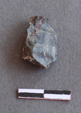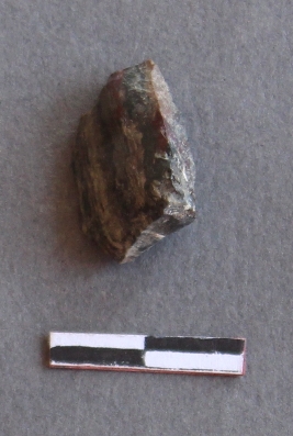 | Description / विवरण | It is a jasper piece with sharp edges and colored bands. Flaked scars on the surface. |