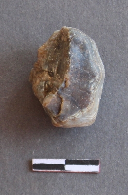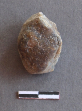 | Description / विवरण | It is s a Jasper nodule, covered with cortex and flakes had been removed from one side. Roundish in shape. |