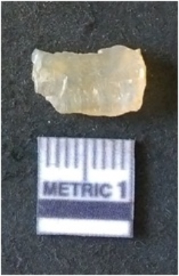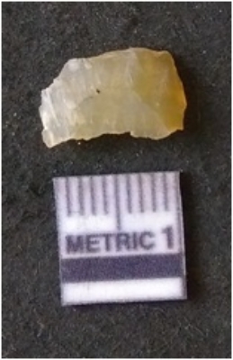 | Description / विवरण | The chalcedony flakehas a median flaked ridge and flake scars on the surface. The piece is cryptro-crystalline in nature and has translucent appearance. |
