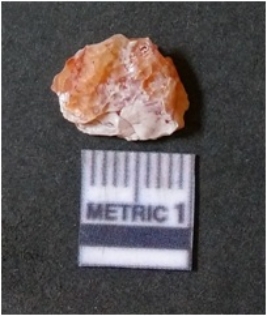 | Description / विवरण | It is chalcedony flake, translucent in appearance. The piece shows sharp pointed ends and flake scars on the surface as a result of flaking. The piece shows a bulb of percussion. |