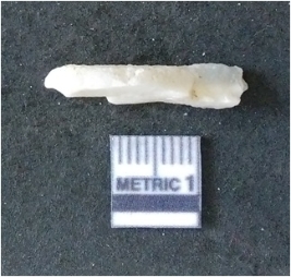 | Description / विवरण | The quartz flake has sharp flaked edges and pointed ends as a result of flaking. The piece is semi-transparent in nature with irregular fracture pattern. The piece is roughly triangular in shape and has a prominent bulb of percussion. The flake is flat with sharp edges and pointed ends. The piece is pale in color. |