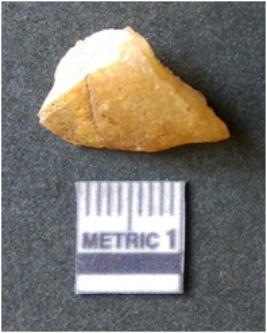 | Description / विवरण | It is chalcedony flake, translucent in appearance. The piece shows sharp pointed ends and flake scars on the surface as a result of flaking. The piece shows a bulb of percussion. |