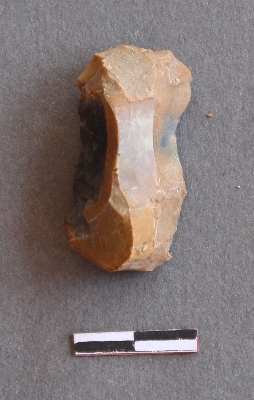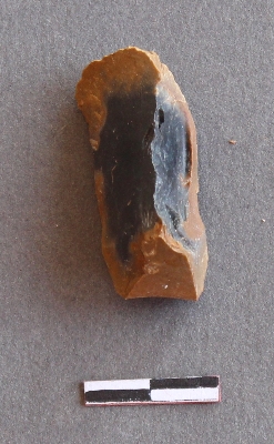 | Description / विवरण | It s a chert fragment, with a striking platform, cortex on one end; there are many flake scars with ripples on it. |