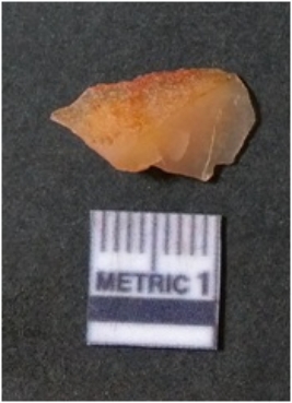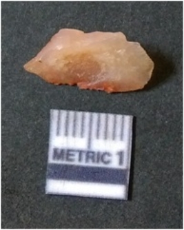 | Description / विवरण | It is chalcedony flake, translucent in appearance. The piece shows sharp pointed ends and flake scars on the surface as a result of flaking. The piece shows a bulb of percussion. |