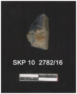 | Description / विवरण | It is fragment of agate. It is the by-product of stone tool manufacturing and the ridges can be seen. |