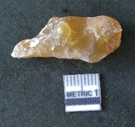 | Description / विवरण | The chalcedony flake is pale yellow in color. Translucent in appurtenance. The piece is shows sharp pointed ends and flake scars on the surface. As a result of flaking. |