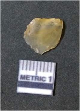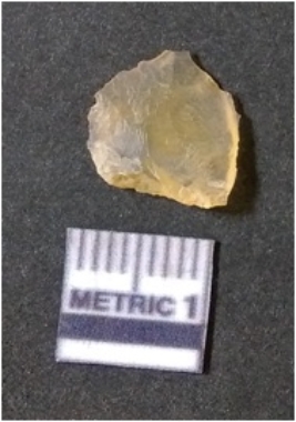 | Description / विवरण | It is chalcedony flake, translucent in appearance. The piece shows sharp pointed ends and flake scars on the surface as a result of flaking. The piece shows a bulb of percussion. |