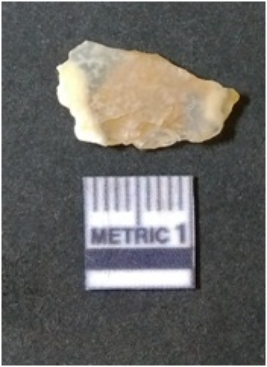 | Description / विवरण | The quartz flake is flat rectangular in shape with sharp flaked edges and surfacial flake scars. The color is pale |