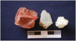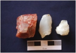 | Description / विवरण | Total No. of debitage 3 cores with flake and blade scars, two cores with prepared platform, byproduct of stone tool manufacturing. Chert 1 , Chalcedony 2 |
