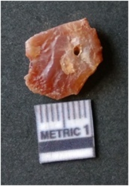 | Description / विवरण | It is carnelian flake red in color, with sharp flakes edges and a small bulb of percussion owing to knapping activity. The piece has sharp flaked edges and a crypto-crystalline matrix. |