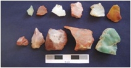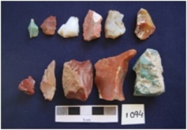 | Description / विवरण | Chert 9 Chalcedony 2 Total No. of Debitage 11 flakes, byproduct of tool manufacturing, a few flakes with prepared platform, diffused bulb on ventral side whereas a few flakes with narrow platform. |