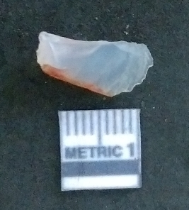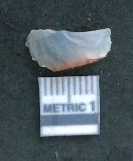 | Description / विवरण | It is a chalcedony flake, with a bulb of percussion on the ventral side. Cortex on one end. |