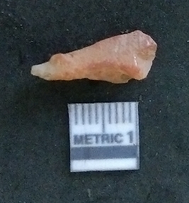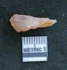 | Description / विवरण | It is a chalcedony flake, with a bulb of percussion on the ventral side. Cortex on one end. |