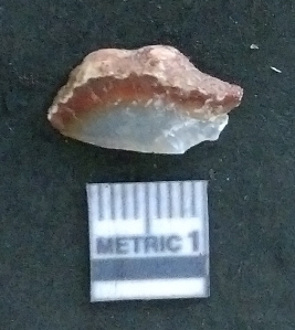 | Description / विवरण | It is a chalcedony flake, with a bulb of percussion on the ventral side. Cortex on one end. |