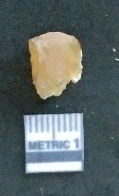 | Description / विवरण | It is a chalcedony flake, with a bulb of percussion on the ventral side. Cortex on one end. |