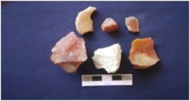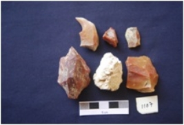 | Description / विवरण | Total No. of debitage 6. Flakes and chunks, byproduct of tool manufacturing, a few flakes with prepared platform, bulb absent on ventral side. Chert 6 |