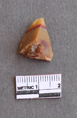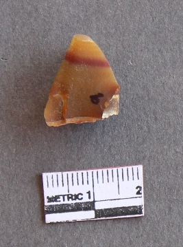| Description / विवरण | Banded chert with cortex is one corner, bulb of percussion, sharp cut edges. |