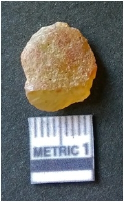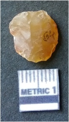 | Description / विवरण | It is chalcedony flake, translucent in appearance. The piece shows sharp pointed ends and flake scars on the surface as a result of flaking. The piece shows a bulb of percussion. |