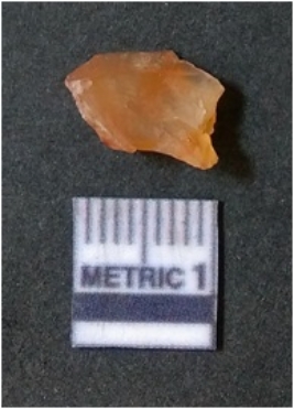 | Description / विवरण | It is chalcedony flake, translucent in appearance. The piece shows sharp pointed ends and flake scars on the surface as a result of flaking. The piece shows a bulb of percussion. |