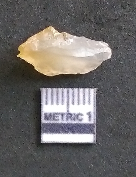 | Description / विवरण | It is a chalcedony flake, with a bulb of percussion on the ventral side. Cortex on one end. |