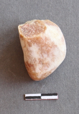 | Description / विवरण | This is a pink quartz stone, a primary flake or a nodule only on one corner a fraction had been removed. |