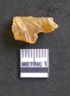 | Description / विवरण | It is a chalcedony flake, with a bulb of percussion on the ventral side. Cortex on one end. |