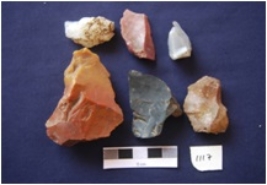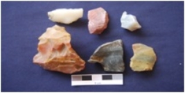 | Description / विवरण | Total No. of debitage 6. Flakes, made on Chert and Agate, byproduct of stone tool manufacturing, a few with prepared platform whereas the others with narrow platform. Chert 4 Chalcedony 2 |