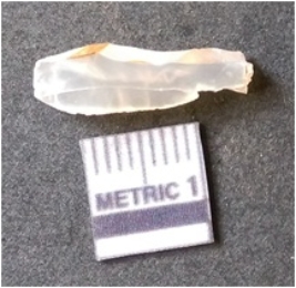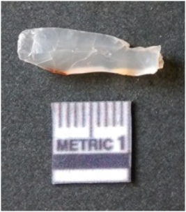 | Description / विवरण | The flake has irregular fracture pattern and sharp flaked edges as a result of lithic knapping activity. The piece is pale, with surfacial flake scars and a bulbous end. The quartz flake is glassy, and transparent. |