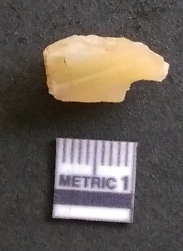 | Description / विवरण | It is a chalcedony flake, with a bulb of percussion on the ventral side. Cortex on one end. |