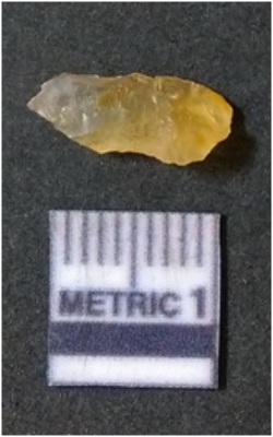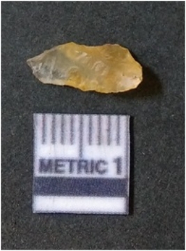 | Description / विवरण | It is chalcedony flake, translucent in appearance. The piece shows sharp pointed ends and flake scars on the surface as a result of flaking. The piece shows a bulb of percussion. |