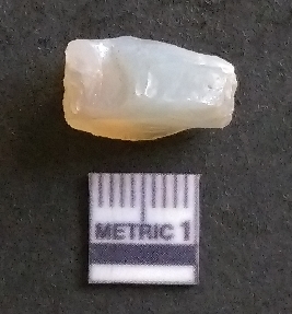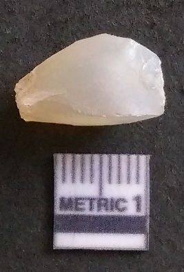 | Description / विवरण | It is a chalcedony flake, with a bulb of percussion on the ventral side. Cortex on one end. |